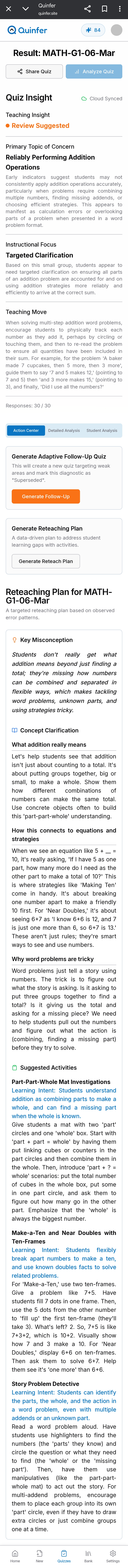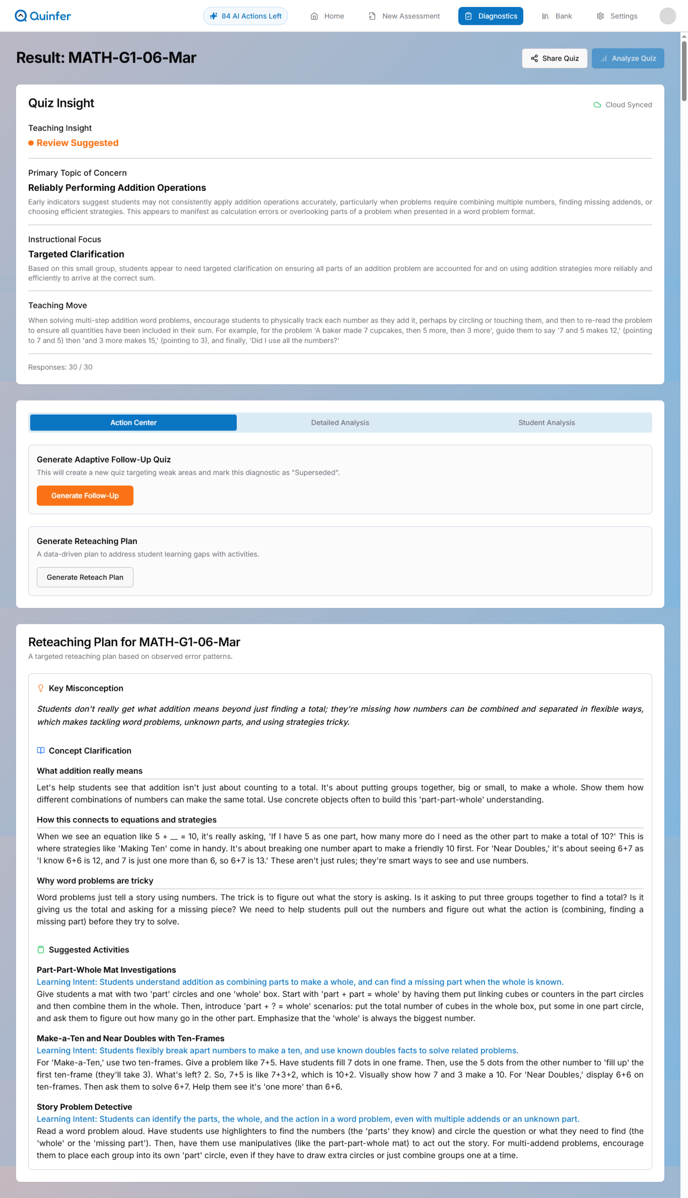 Receive actionable follow-up activities and concrete reteaching strategies based on class performance.